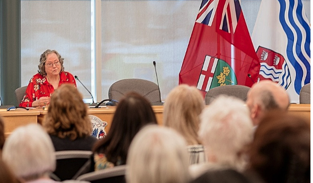 GV GRANs Gail Mullan, Kathleen Wallace-Deering, and Ginger Shaw with GRAN display at the Coquitlam Public Library